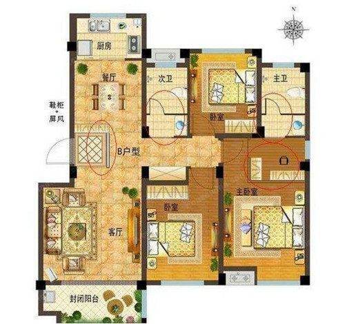 1、我们可以在大门进入室内的地方先布置个玄关、或者摆一面屏风、或者是一些柜子来作为隔断,从而来改变入门气流进屋后的走向,不会直冲卧室。
