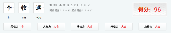 五格大吉,这个名字很好! 名字李沛鑫评分:(评分仅供参考,各项指标的详细说明请看后面的分析) 文化印象名字文化印象得分为88。(主要参考成语、趣解、诗词、名言、名人用字等因素) 五行八字名字五行八字得分为98。(主要参考名字用字的五行是否符合八字喜用神的要求) 生 肖名字生肖得分为98。(主要参考名字用字的偏旁部首是否符合生肖起名的要求) 五格数理名字五格数理得分为90。(主要参考了名字用字的姓名学笔画组合的搭配关系) 沛从生肖上看,生肖为龙,名字中应有氵部首为吉,沛的部首为氵。 鑫从生辰八字上看,名字中需有金相助,鑫字的五行属性为金。从生肖上看,生肖为龙,名字中应有金部首为吉,鑫的部首为金。哪位大师帮忙看看我家儿子的四柱八字、喜神、用神、忌神,万分感谢!顺便给几个好名字啊!