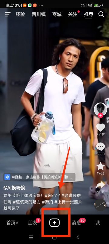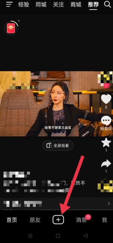 1.打开抖音,点击中间的加号。