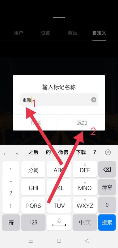 5.之后可以根据的需要类型来添加,如选择【自定义】,点击【创建新标记】。