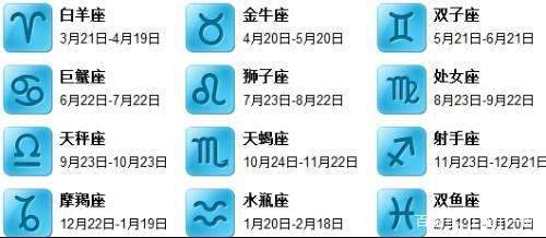 星座是按阳历(公历)日期划分的,首先你得知道你的阳历出生日期,然后对照下面的资料。 如果只知道阴历出生日期,可先到这里换算成阳历生日再输入资料。 白羊座:3月21日~4月20日 金牛座:4月21日~5月21日 双子座:5月22日~6月21日 巨蟹座:6月22日~7月22日 狮子座:7月23日~8月23日 处女座:8月24日~9月23日 天秤座:9月24日~10月23日 天蝎座:10月24日~11月22日 射手座:11月23日~12月21日 魔羯座:12月22日~1月20日 水瓶座:1月21日~2月19日 双鱼座:2月20日~3月20日 因为太阳每年进入各个星座的时间略有差别,如果你的生日在交界星座到底是按公历算还是农历算的