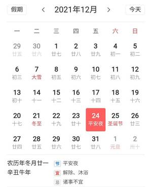 以2021年为例,2021年冬月二十一是2021年12月24日。
