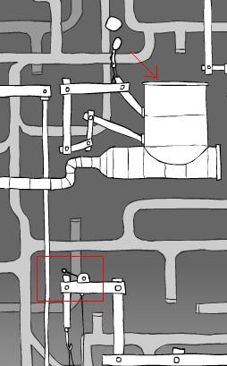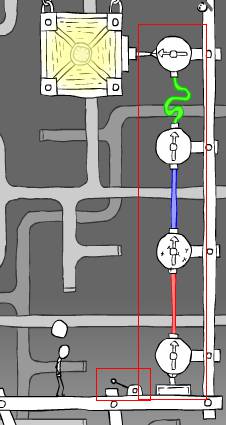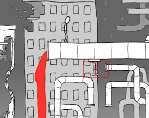 4.然后进入进入下一个地图,通过图中标记的开关,上去上面那里,然后跳进去红色箭头指的地方