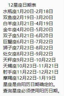 星座是按月份的,星座是按出生那年的阳历(新历,公历)生日划分的 下面是星座日期划分表,把阳历生日对照下面的就可以知道是什么星座啦 白羊座 ( 03/21 - 04/20 ) 金牛座 ( 04/21 - 05/20) 双子座 ( 05/21 - 06/21) 巨蟹座 ( 06/22- 07/22) 狮子座 ( 07/23 - 08/22) 处女座 ( 08/23 - 09/22) 天秤座 ( 09/23 - 10/23) 天蝎座 ( 10/24 - 11/22) 射手座 ( 11/23 - 12/21) 魔羯座 ( 12/22 - 01/19) 水瓶座 ( 01/ 20- 02/18) 双鱼座