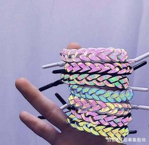 这个金色小狮子就是Rastaclat的商标,人称传播正能量的小狮子,基本上所有绳子都是这个硬纸卡的包装,有的款式的颜色不同,黑色也换成其他的颜色。鞋带头顶端三个金属片结合得比较紧密,做工不错,据说假货的结合比较差,可以从这里辨别真假。上手的感觉还是不错的,简简单单,后面隐约着鞋带头。