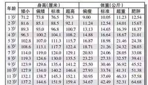 7一12岁身高体重标准表2014