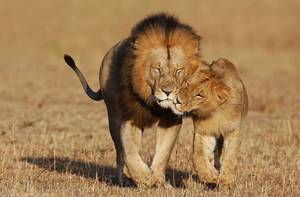 公狮子是狮群的守护者,其体重和战斗力明显超过母狮子。