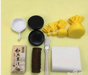2.拓包:拓包是扑墨用的,需自己制作。拓包的中心是一小块棉花或海绵,用塑料薄膜包裹成算盘珠那样大小,在薄膜之外再裹上一层薄形毛料,最外层再 裹上一层细绢,用细绳扎紧就可。这种拓包使用后可以在清水中洗净晾干,以备 下次再用。还有一种简易拓包,用小块棉花,直接裹上细绢扎成。这种拓包只能 使用一次,因为墨汁渗入棉花,干后便结成硬块,须包上新棉花后重新扎好,才 能再次使用。