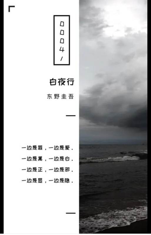 在我心里,东野圭吾的《白夜行》就是我的神,我心中的白月光。