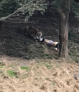 有派粉说:“没了,我都不敢拍,我看到老虎在咬人,那个人满脸是血坐起来又被老虎扑倒了”