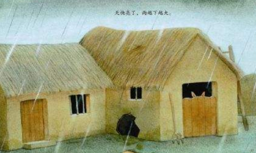 这时老婆婆对老公公说:“这场大雨下得太可怕了,只怕老虎会来。”老公公说:“老虎我不怕,就怕屋漏。”