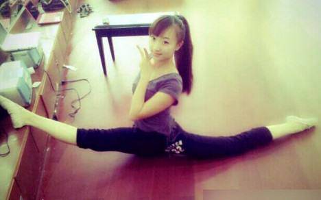 因为也没有别人教我,也没有别人帮助我,我都是自己偷偷的练,自己硬生生的把自己给压下去,所以,练的比较慢一点,花费的时间也比较长,承受的痛苦也比较多。我练了差不多有一年的时间,才能劈得下一字马。