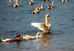 5、高邮鸭:是全国三大名鸭之一,产于江苏省高邮,是我国江淮地区良种,属蛋肉兼用型地方优良品种。高邮鸭善潜水、耐粗饲、适应性强、蛋头大、蛋质好。2006年被农业部列入《国家级畜禽品种资源保护名录》。