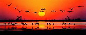 原来,当时的南昌地区,八九月间,田野里活动着一种飞蛾,数量极多,在江上飞舞时,纷纷坠落水中,引得江鱼群游争食。当地人管这种飞蛾叫做“霞蛾”,简称为“霞”。“霞蛾”纷坠如雨,也引得野鸭(鹜)游来争食,于是便出现了“落霞与孤鹜齐飞”的奇异场景和壮观画面。