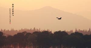 "落霞与孤鹜齐飞 ,秋水共长天一色"出自唐朝王勃所作《滕王阁序》。作者以落霞、孤鹜、秋水和长天四个景象勾勒出一幅宁静致远的画面,历来被奉为写景的精妙之句,广为传唱。