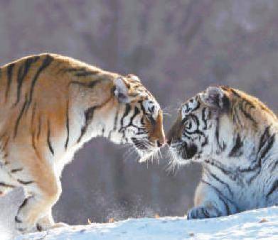 常言道:“谈虎变色”,“望虎生畏”。在人们心目中,老虎一直是危险而凶狠的动物。然而,在正常情况下东北虎一般不轻易伤害人畜,反而是捕捉破坏森林的野猪、狍子的神猎手,而且还是恶狼的死对头。为了争夺食物,东北虎总是把狼赶出自己的活动地带。东北人外出时并不害怕碰见东北虎,而是担心遇上吃人的狼。人们赞誉东北虎是“森林的保护者”。