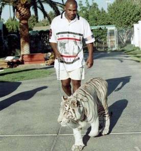 众所周知,顶级拳击冠军都喜欢养宠物。泰森和梅威瑟都养过老虎,但梅威瑟显然是在效仿泰森,梅威瑟只是假装和老虎打架。但是泰森是认真的。当泰森1995年第一次出狱时,他受到了汽车大亨托尼的启发,想养一些老虎来取乐。后来,泰森如愿以偿,真的养了几只老虎和狮子。拳击冠军泰森回忆起过去与老虎搏斗的情景:小时候太疯狂了,现在肯定不敢了