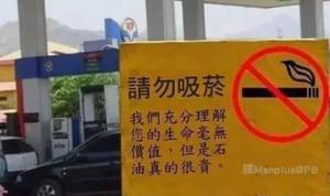6、加油站广告——请勿吸烟,我们充分理解您的生命毫无价值,但是石油真的很贵!
